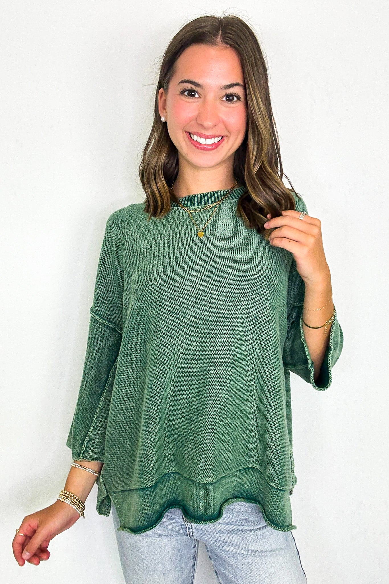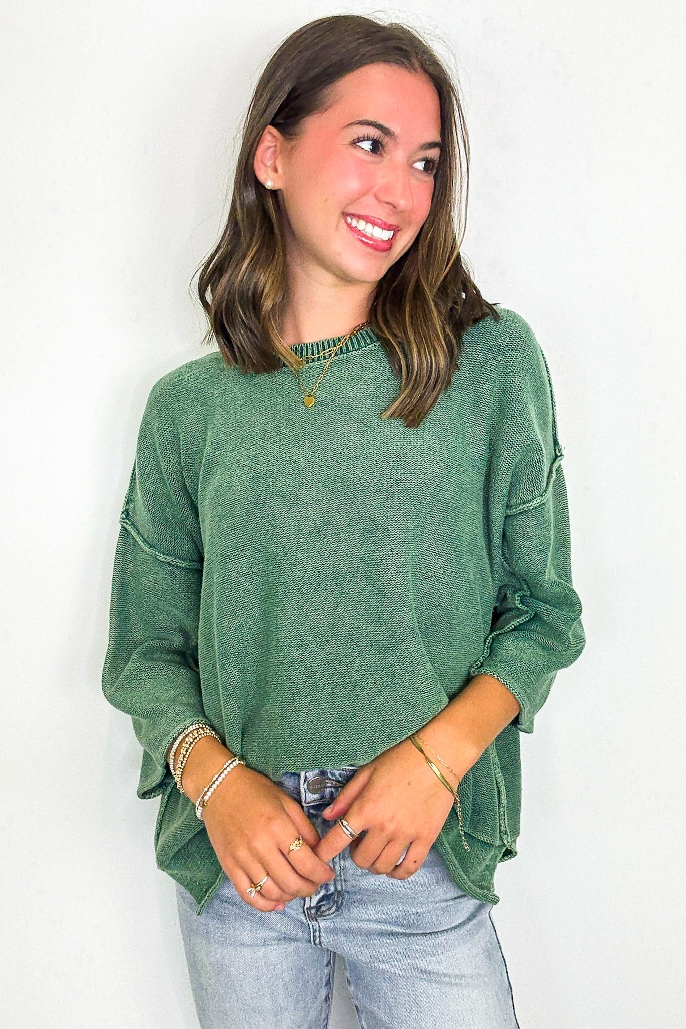 Details: Effortless comfort meets vintage-inspired charm in the Cozy Fade Sweater ― a relaxed knit pullover with a perfectly lived-in look. Featuring a softly washed finish, 3/4 length sleeves, and a boxy silhouette, it's your new go-to for layering up without overthinking it.