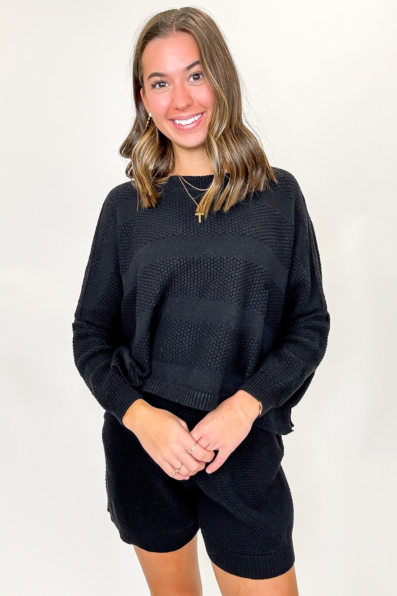 Details: Stay effortlessly chic and endlessly comfortable with the Ease Knit Set. Designed with a relaxed fit and soft knit texture, this matching top and shorts duo is perfect for lounging at home, casual days out, or styling with layers for a polished off-duty look.