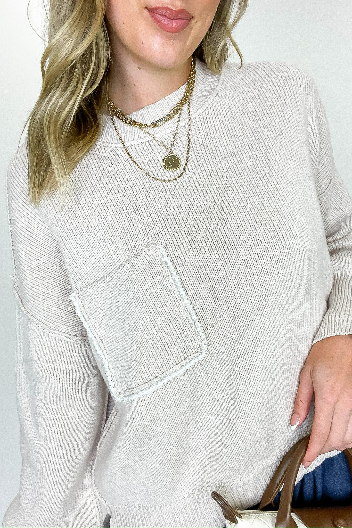 Details: Elevate your everyday with the Knit Intentions Front Pocket Sweater ― where effortless comfort meets thoughtful design. This relaxed-fit knit is crafted with soft, breathable yarn and features a single chest pocket that adds both charm and utility. Finished with subtle ribbed trims and a timeless silhouette, it's your new go-to for cozy-chic layering from weekday errands to weekend lounging.