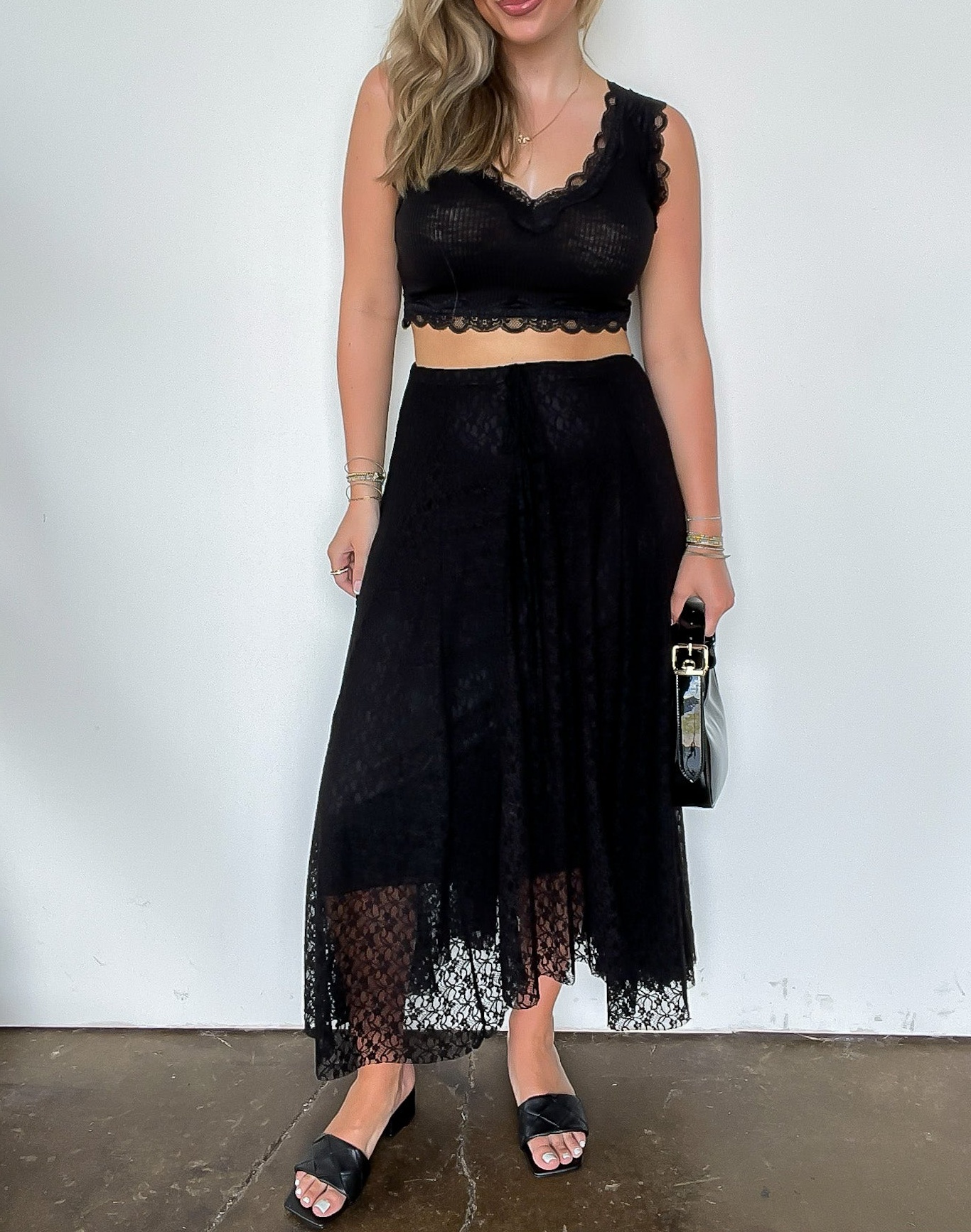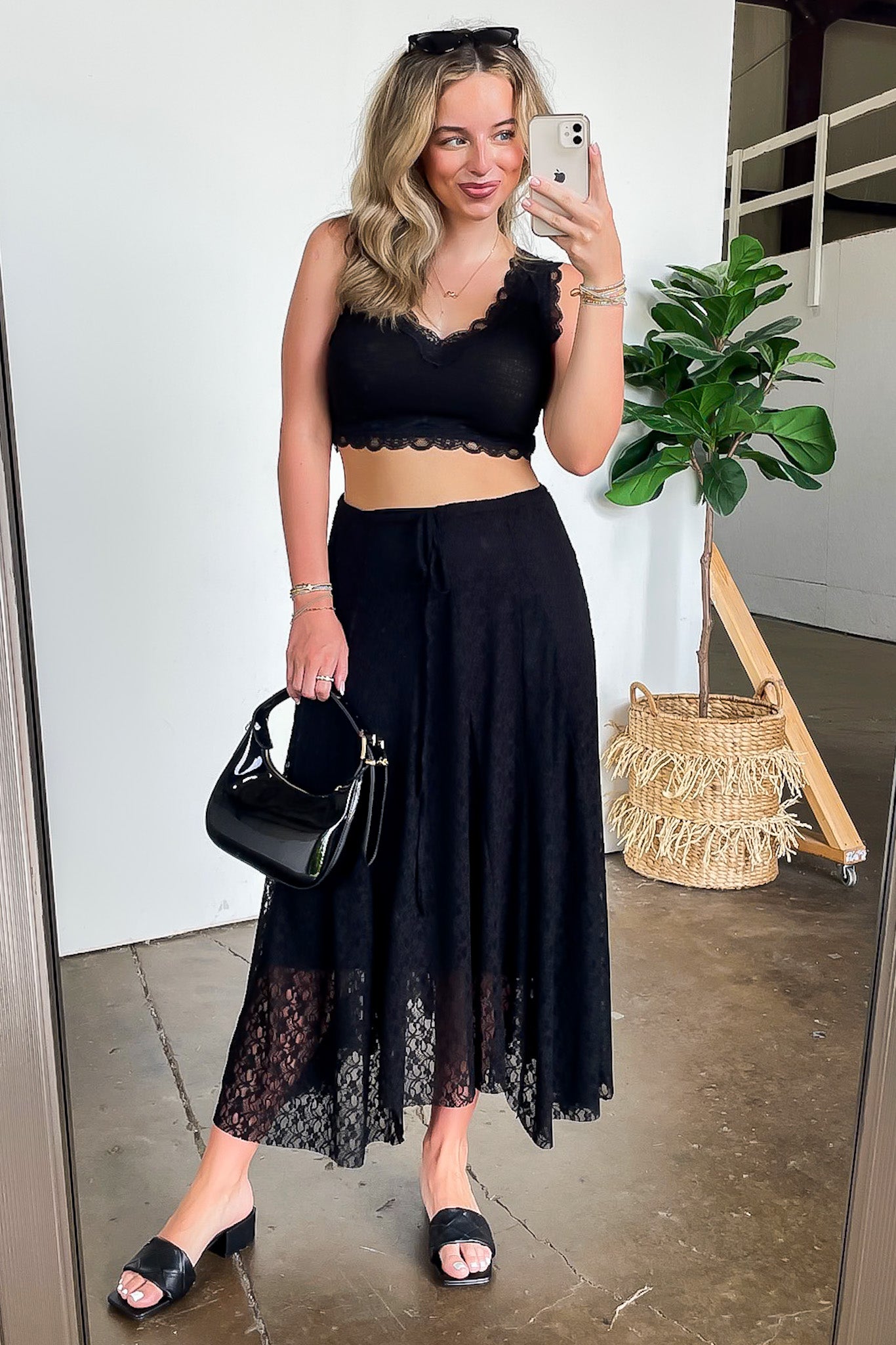 Details: Effortlessly feminine with a touch of flirt, the Lace Maxi Skirt is your new statement piece for day-to-night elegance. Featuring intricate lace detailing and a flowing silhouette, this skirt brings soft movement and romantic charm to every step. Dress it up or down—either way, it’s designed to turn heads.