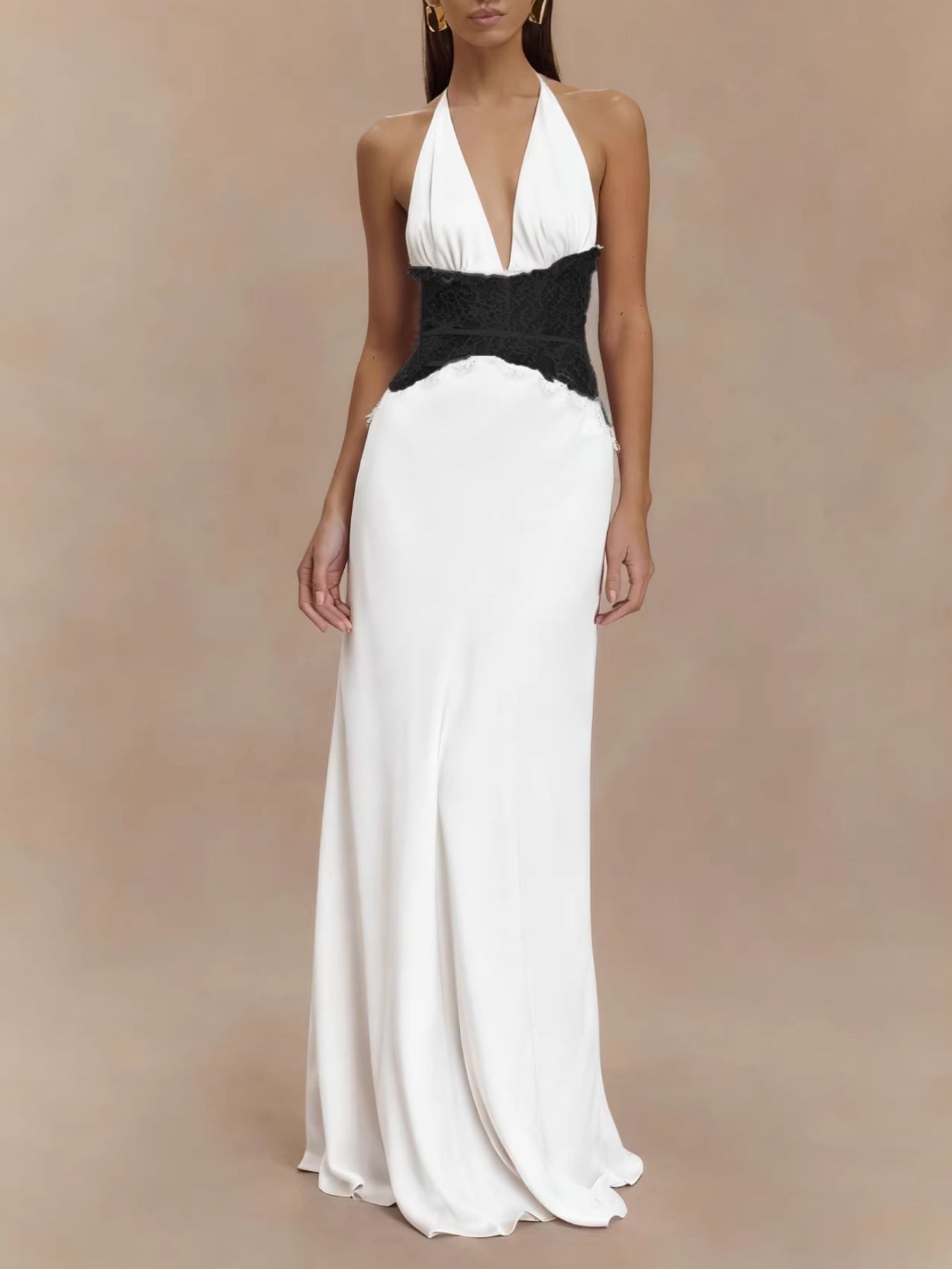Halter Neck Lace Trimmed Maxi Dress 1887925