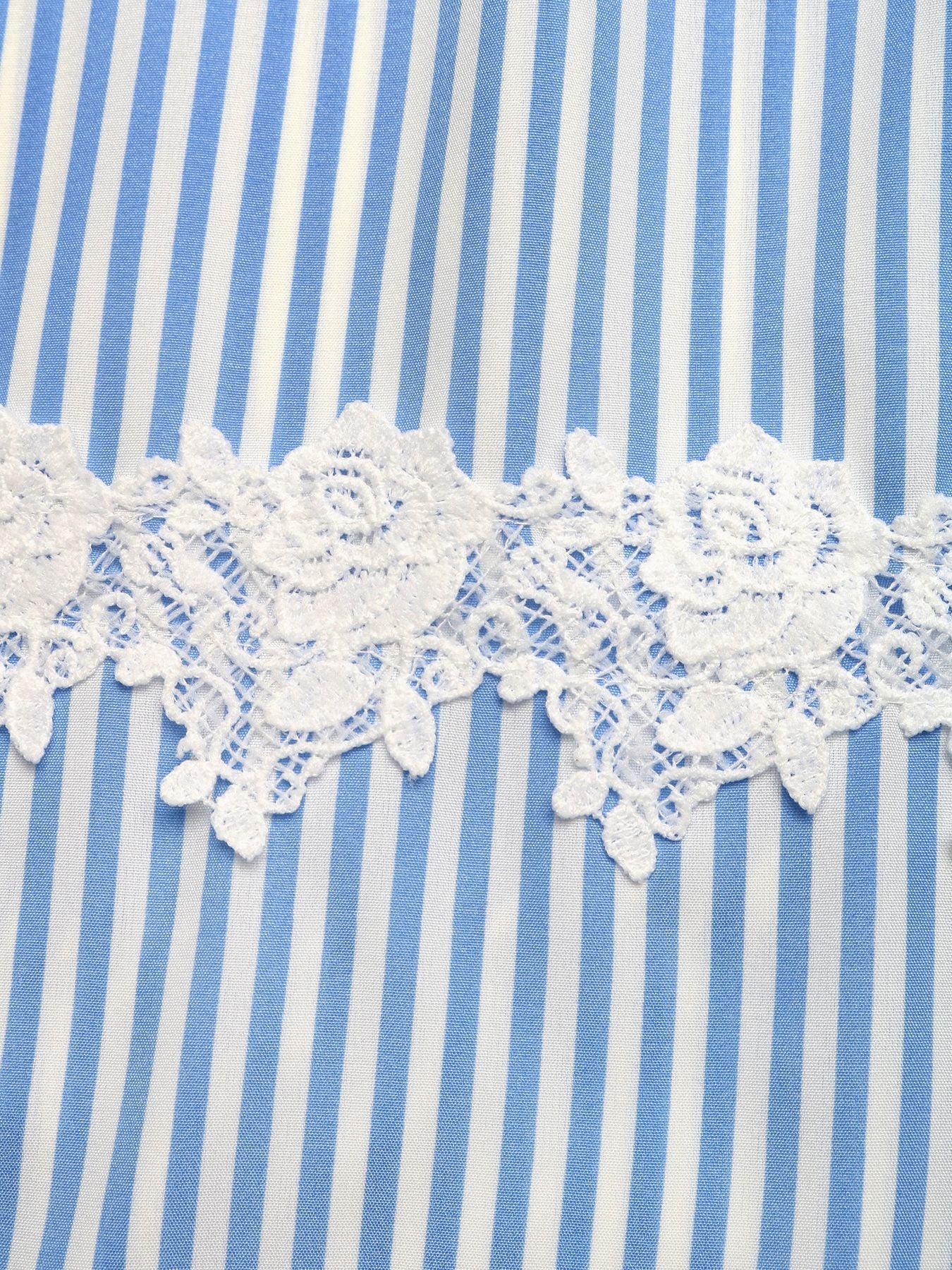 Striped Smocked Lace Trim Midi Dress 1888275