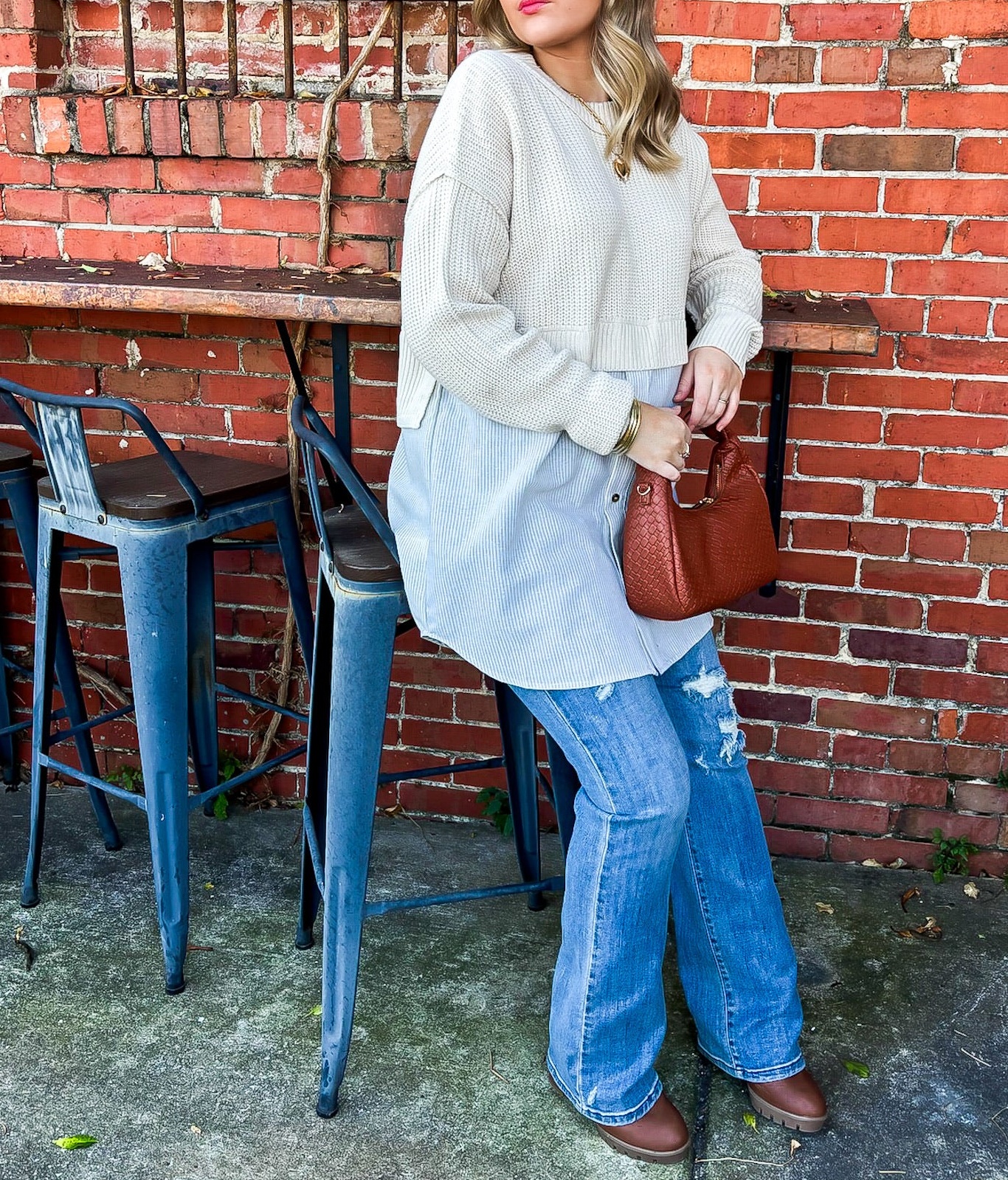 Details: Effortless layers, no styling required. The Split Seconds Knit and Button Down Top combines a cozy cropped sweater overlay with a crisp button-down hem for that perfectly polished, preppy-meets-trendy look. Designed for easy outfitting, this versatile top gives you the illusion of chic layering in one piece―ideal for desk to dinner, campus to café.