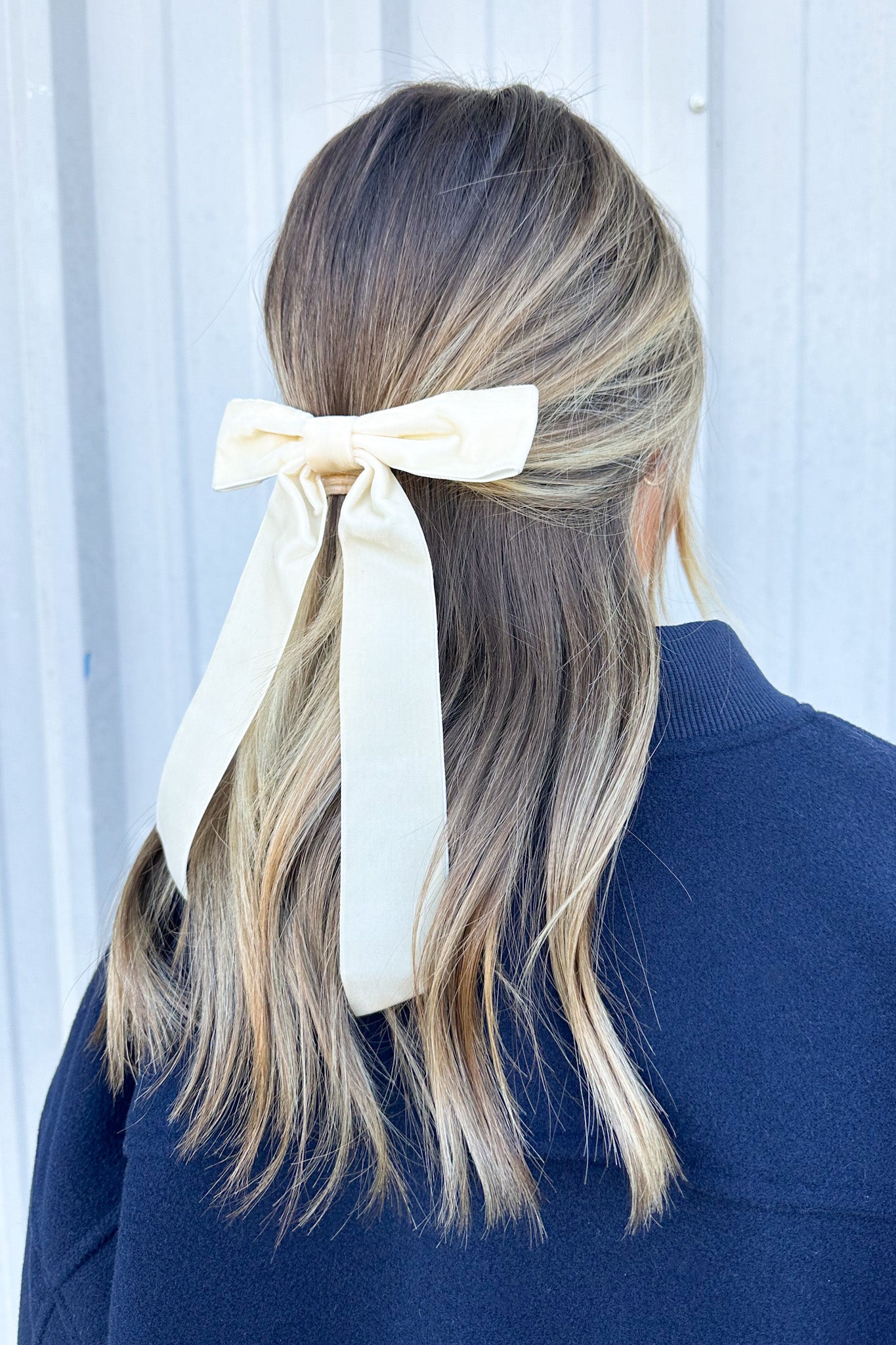 Details: Put the finishing touch on your tresses with this feminine accessory that features a long velvet bow with easy wear hair clips.
